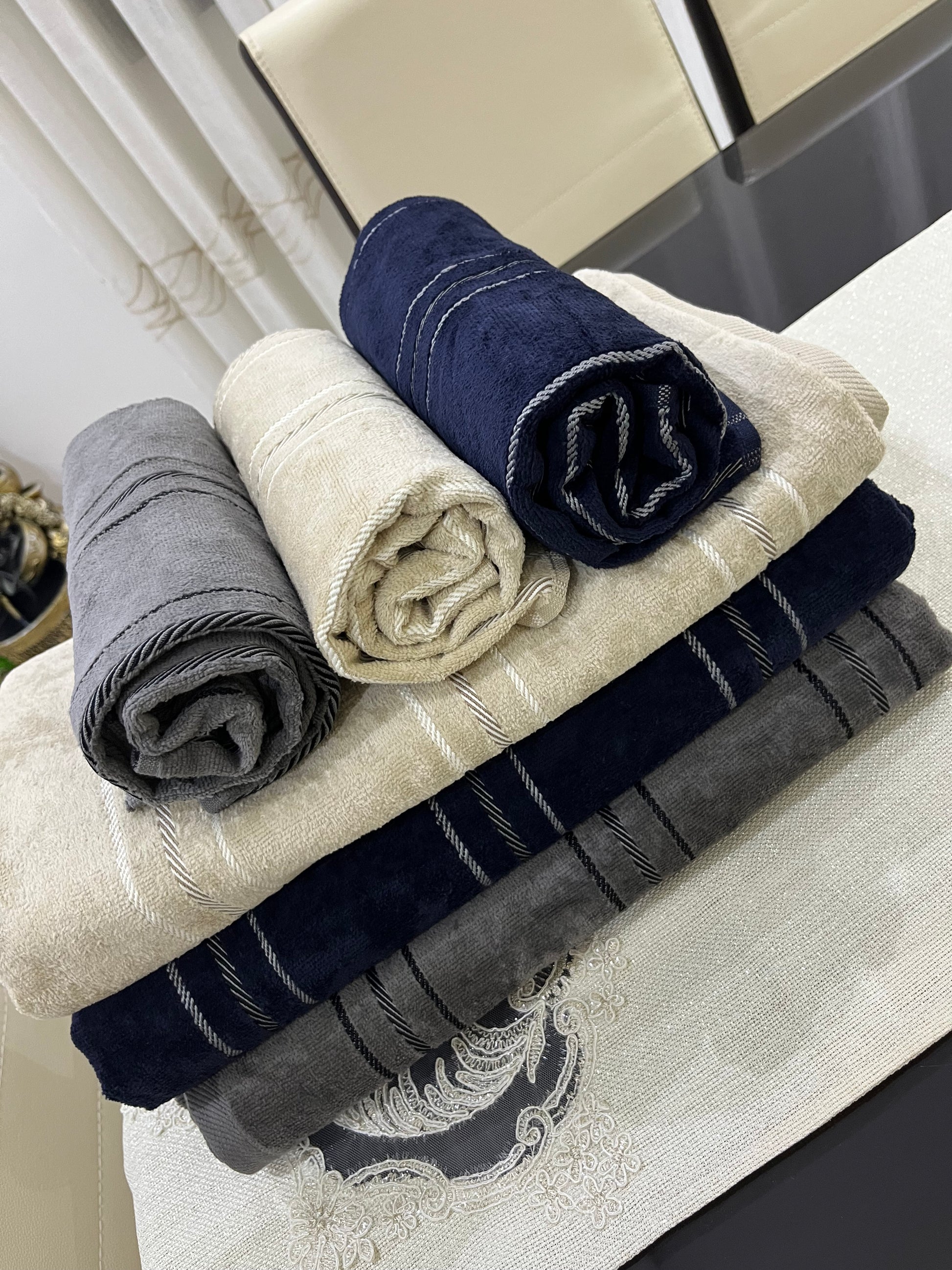 Ensemble de serviettes de bain homme, en 2 pièces (150x100cm) et (90x50cm) un coté velouté et un coté bouclé, 100/100 coton